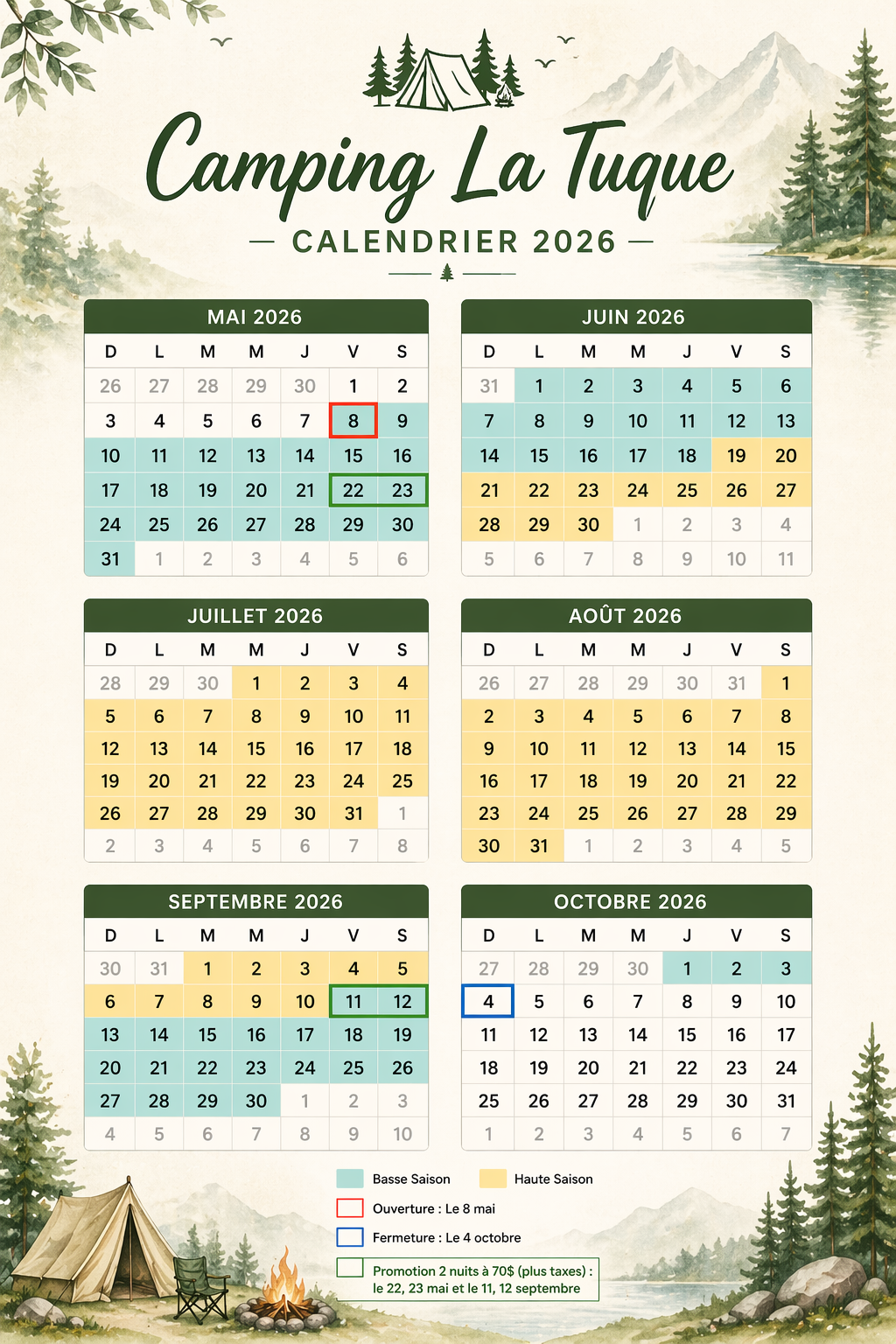 - Le calendrier des rabais ainsi que les autres rabais du camping ne s’appliquent pas pour PAC